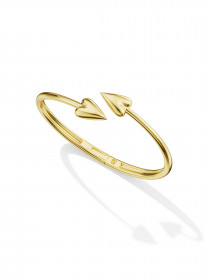 Золотой браслет с двумя сердцами вытянутой формы по мотивам украшения из фламандского иллюстрированного часослова 15 века. Чтобы надеть браслет, надо раскрыть его посередине. Благодаря пружинке он сам закроется на запястье.