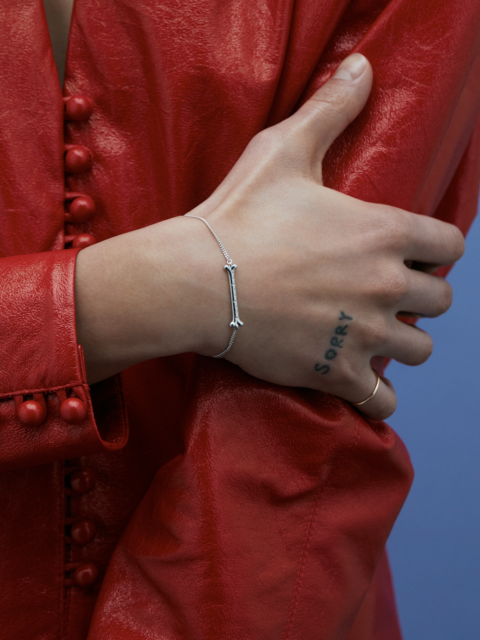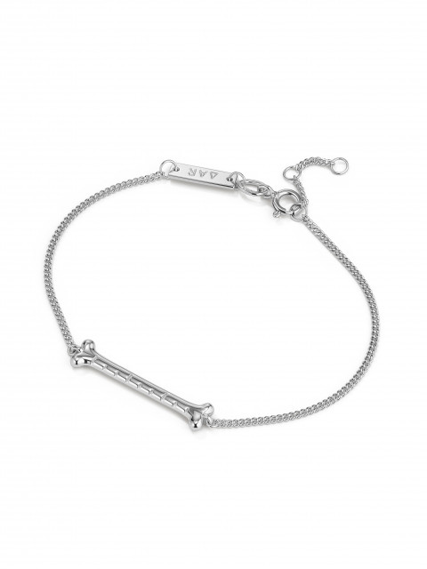 Серебряный браслет со вшитой костью. На одной стороне кости нанесена измерительная шкала. Длина браслета регулируется.