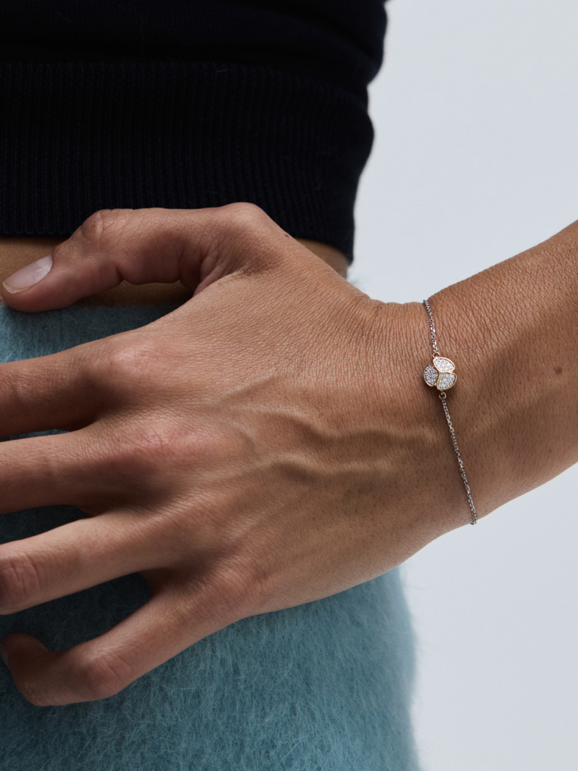 Браслет завязь из белого и лимонного золота с бриллиантами