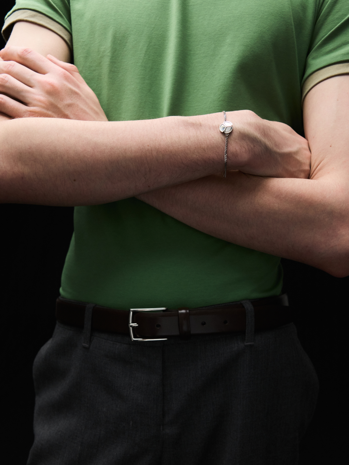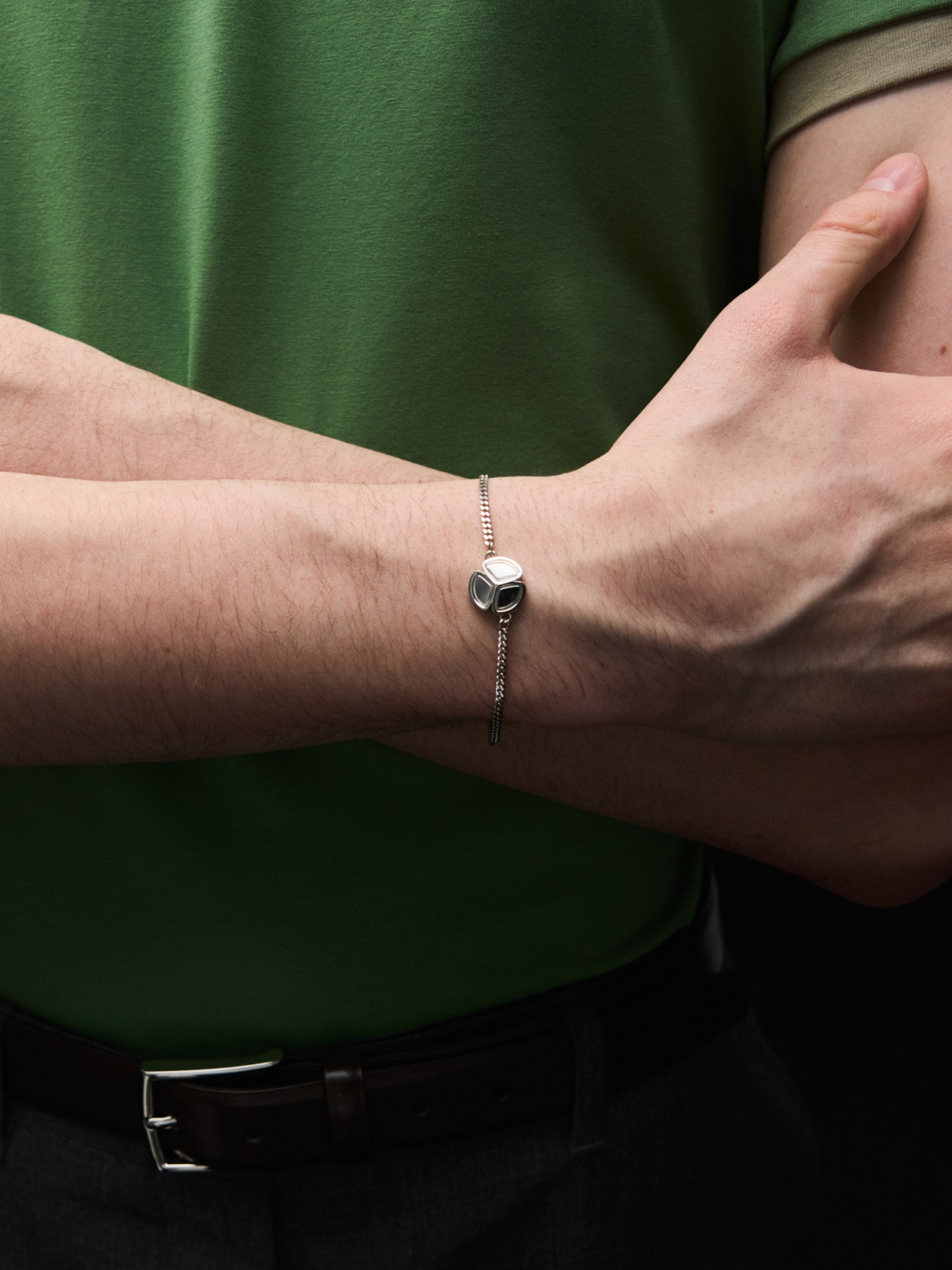 Завязь на плоской цепочке подойдет на мужское запястье от 17.5 до 20.5 см.