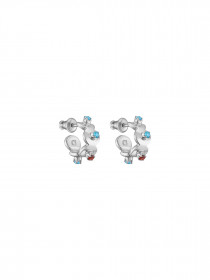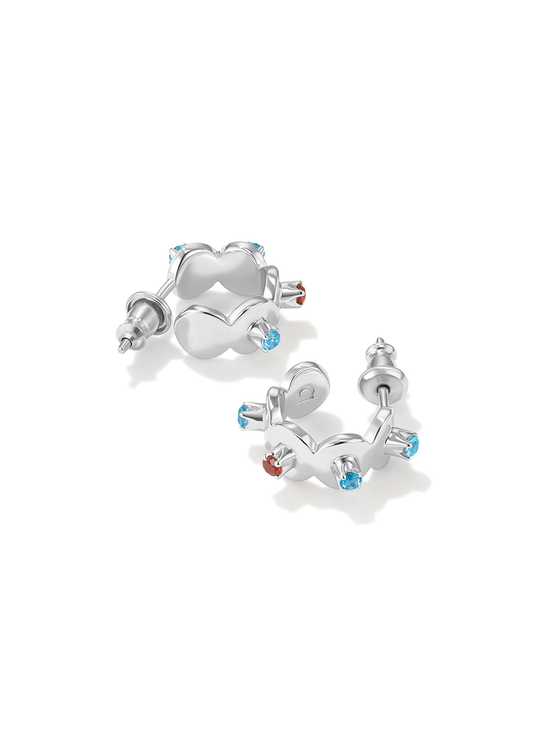 В этой паре серег небольшого размера закреплены природные камни двух цветов: голубой топаз и гранат.