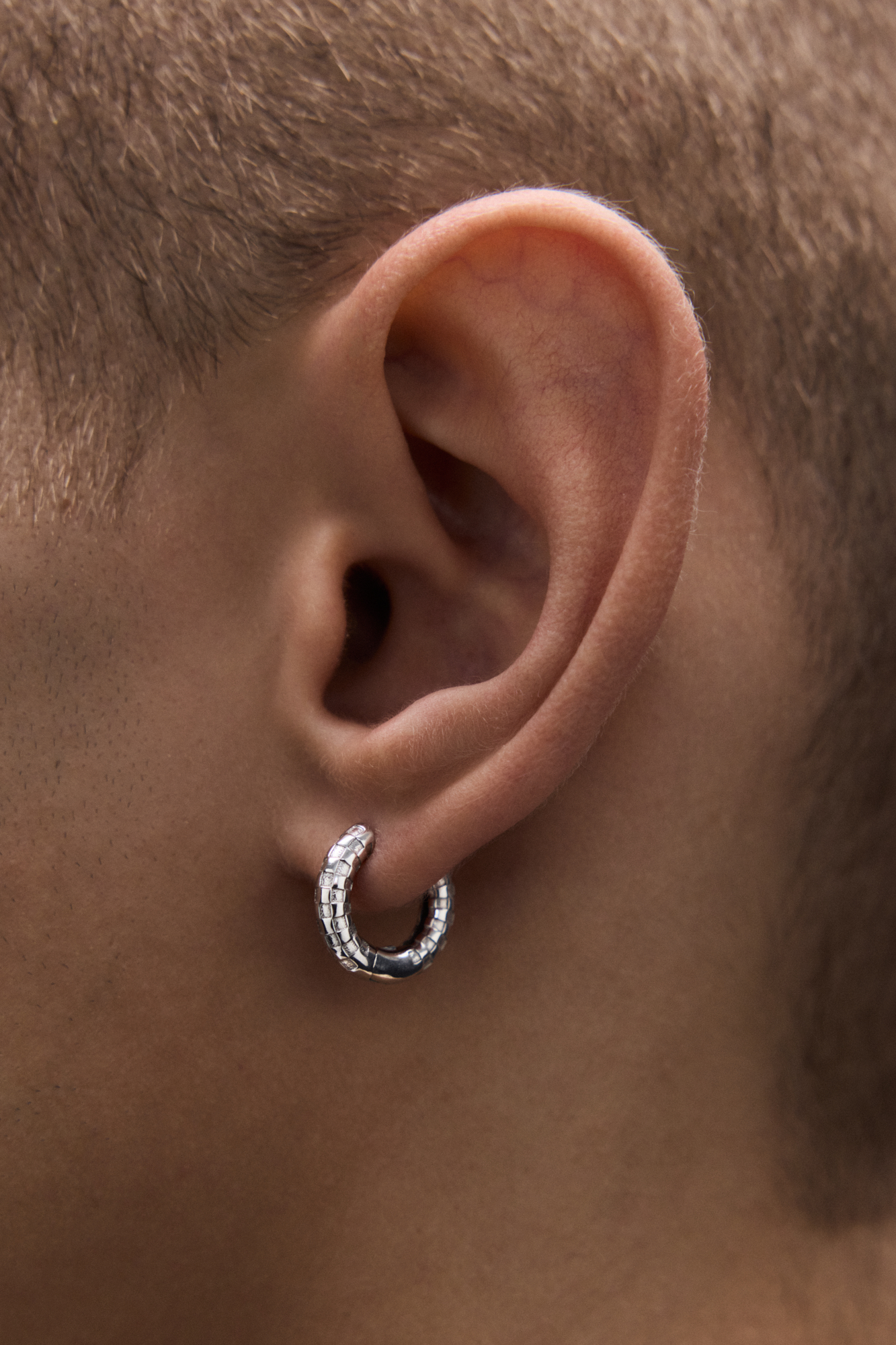 Серьга-хуп с рисунком по мотивам шахматного узора в графическом редакторе, который обозначает прозрачный фон или прозрачную область внутри изображения. Этот хуп подходит по размеру под все тринкеты, которые мы выпускаем.