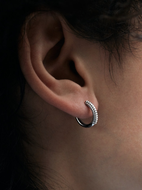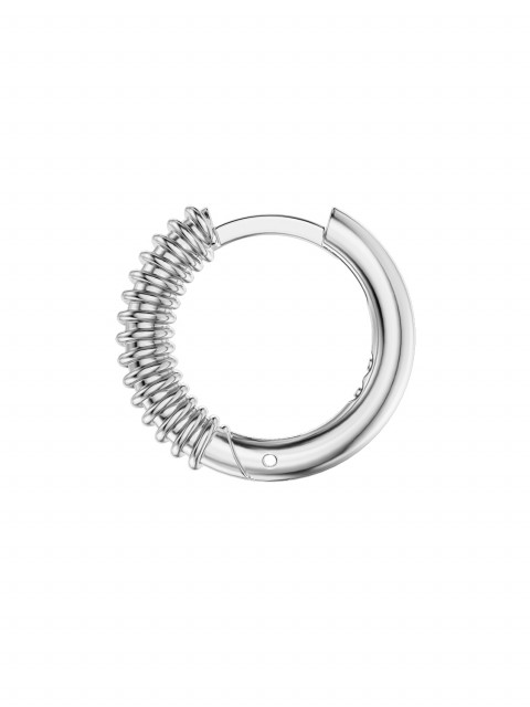 Унисекс-серьга с намотанной пружинкой, напоминающей и профессиональную кухню ресторана с гибкими шлангами смесителей, и детскую игрушку-пружинку.