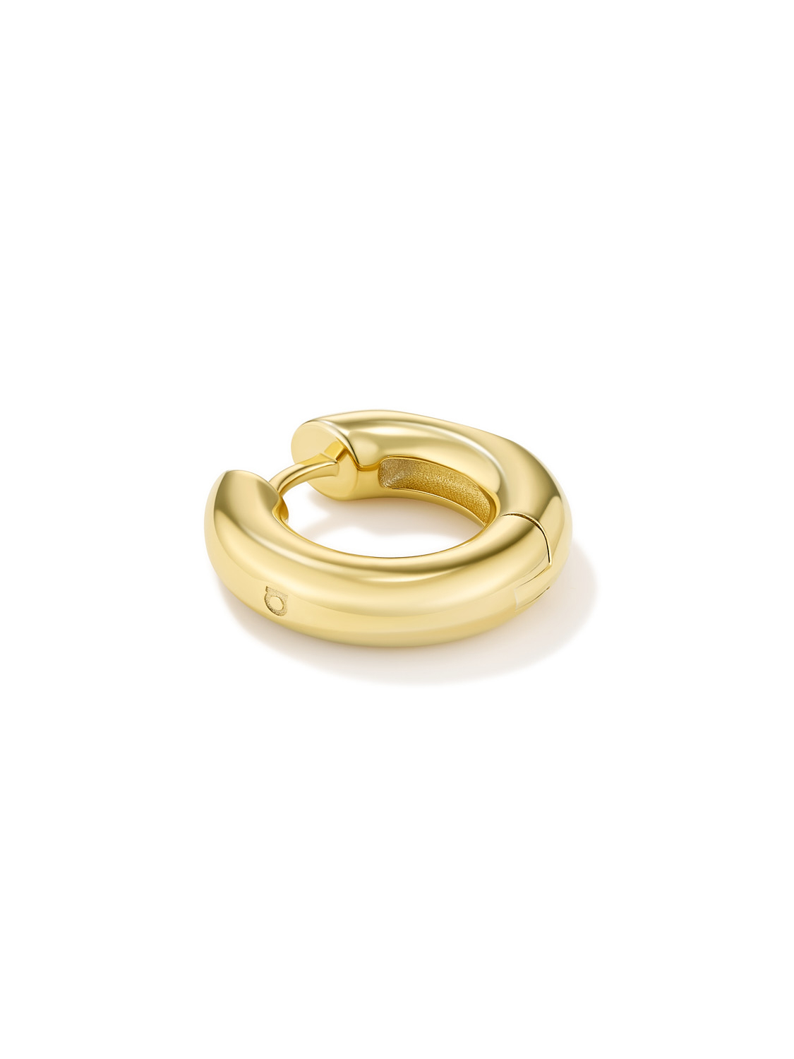 Круглая серьга-хуп из серебра с позолотой с небольшим участком, похожим на след от стебля или ветки. Позолота выполнена вручную.