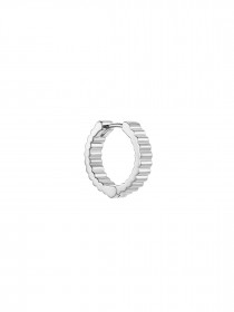 Унисекс серьга на каждый день. Внутренняя сторона тоже имеет ребристый ритм стекляруса — это сделало серьгу более требовательной в производстве, зато красивый дробный блик виден и снаружи и внутри.