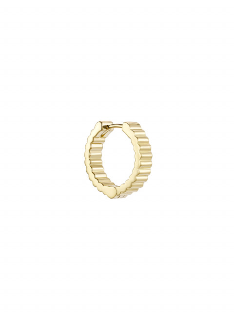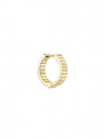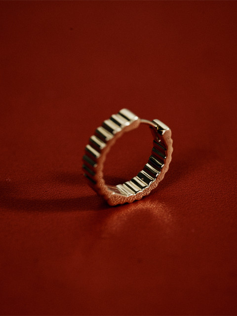 Унисекс серьга на каждый день. Внутренняя сторона тоже имеет ребристый ритм стекляруса — это сделало серьгу более требовательной в производстве, зато красивый дробный блик виден и снаружи и внутри.