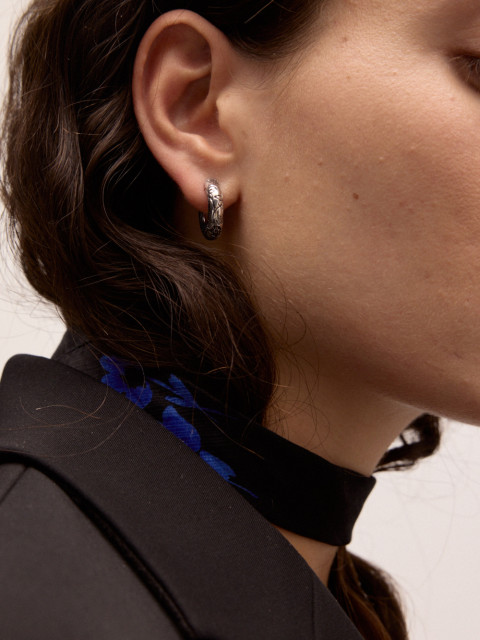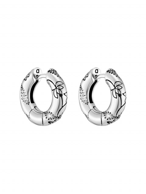 Цветной узор — не эмаль, а нанокерамика. Серьги целиком покрывают цветом, запекают в печи, затем снимают слой керамики, так чтобы цвет остался только внутри узора. Это полностью ручная работа. Небольшие участки узора могут остаться непрокрашенными, и нам это нравится. Каждая пара уникальна и может отличаться от фотографии на сайте.