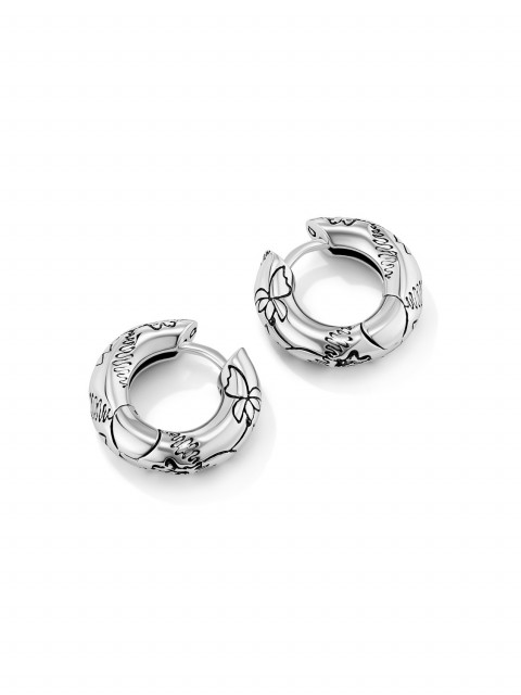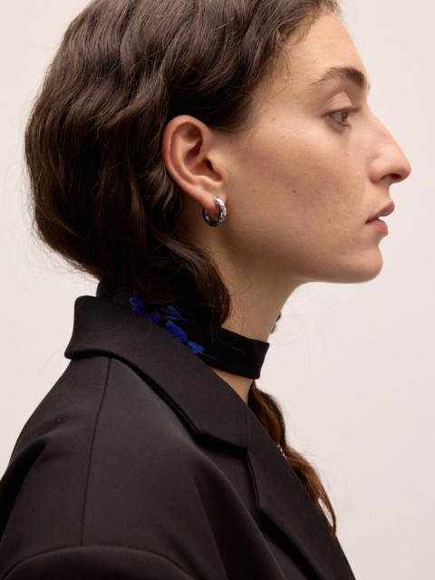 Солидные серьги-хупы, «обтянутые» гобеленом. Рисунок «мильфлёр» (тысяча цветов — пер. с фр.) взят с серии тканых шпалер «Дама и единорог».