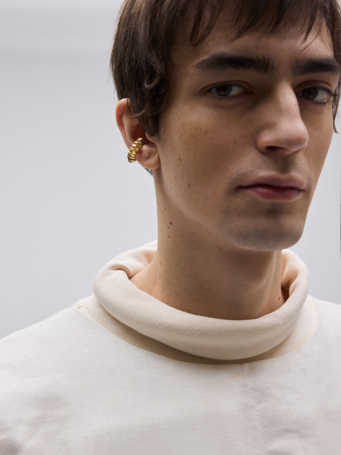 Широкий текстурный кафф необычного силуэта, придуманный во время изучения фотографий солнечной «короны» — самого горячего слоя атмосферы Солнца. Удобный, заметный, ловит и отражает блики света своими многочисленными поверхностями.