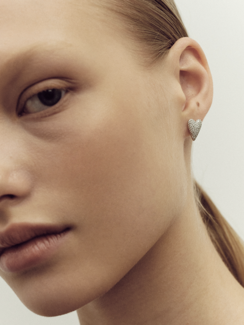 Пуссеты-сердца с бриллиантами