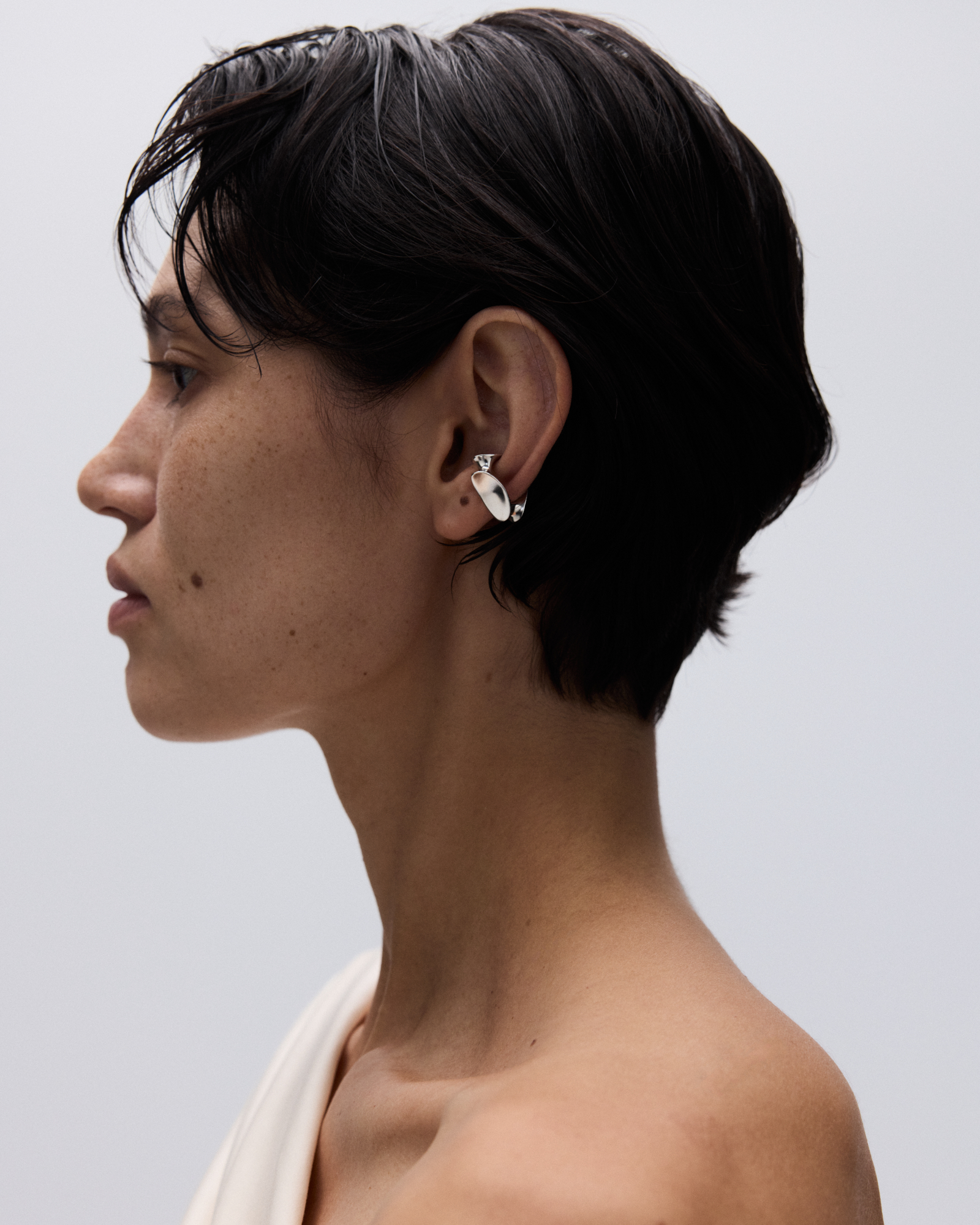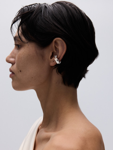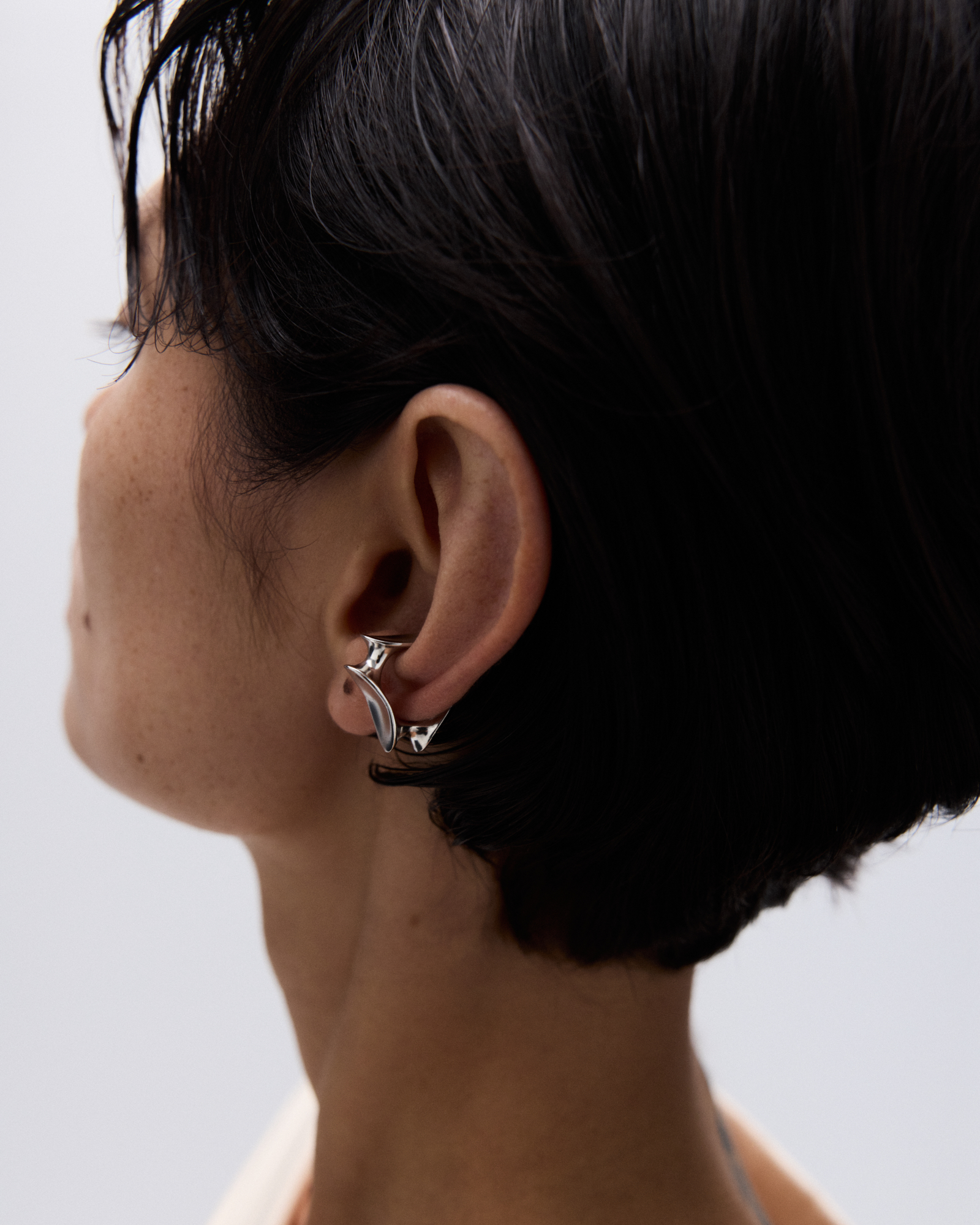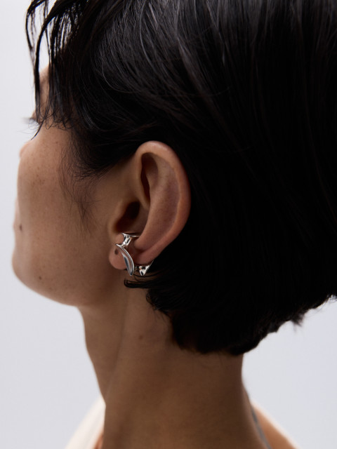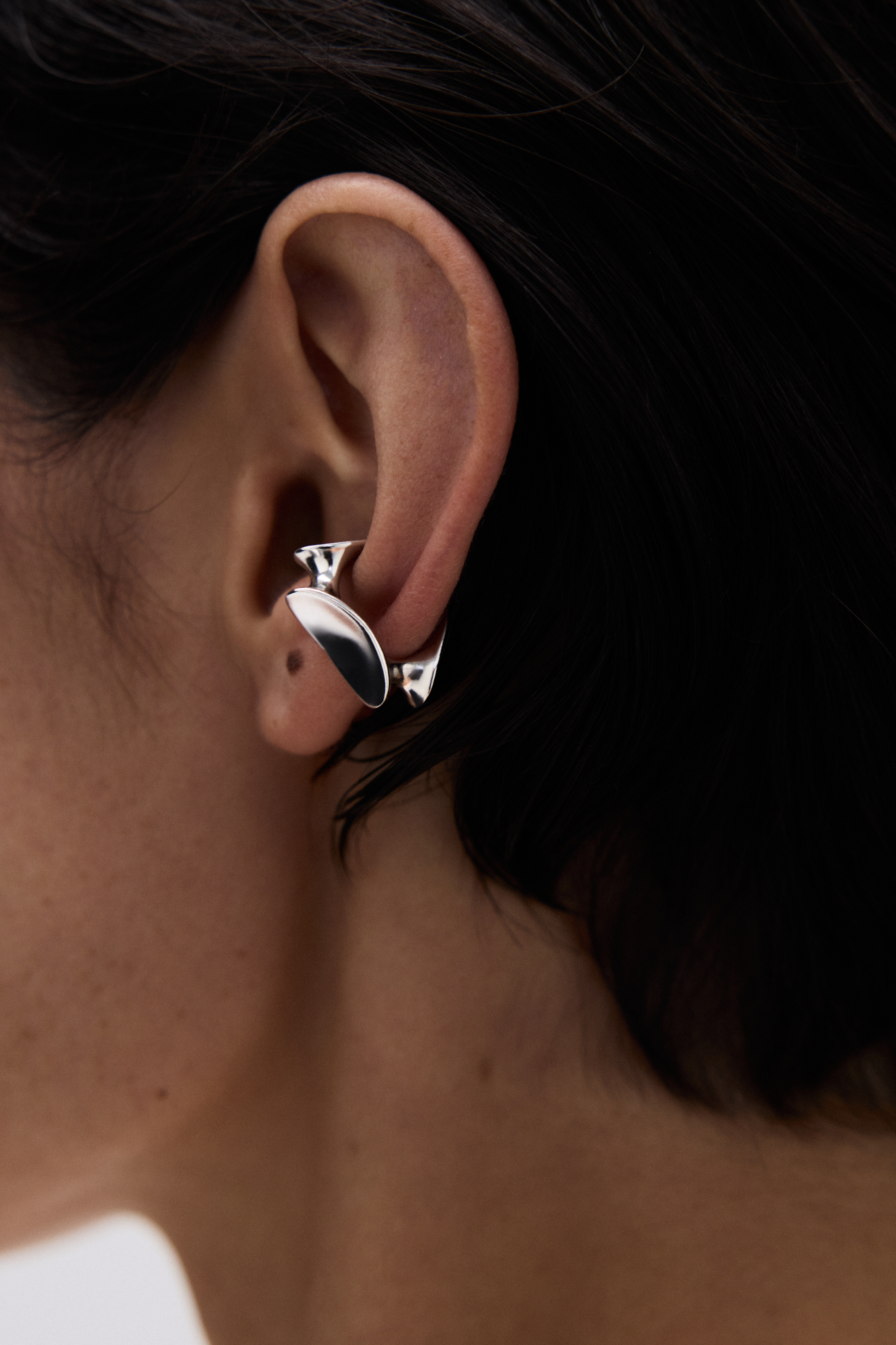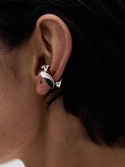 Кафф, составленный из эллипсов, которые будто притягиваются к телу. Просвет этого каффа чуть меньше, чем обычно. Если большинство каффов вам велики, то эта модель будет сидеть плотнее. Начинайте надевать кафф через самую тонкую часть уха.