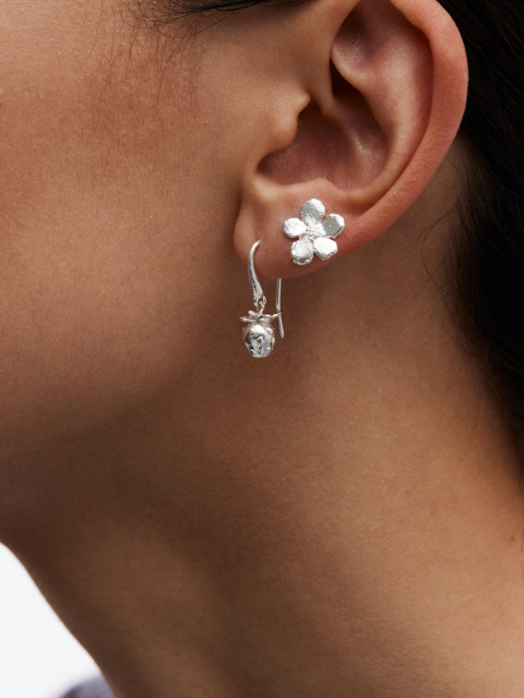 В комплекте две серьги. В этой коллекции мы сохранили естественный цвет серебра и фактуру материала без родирования и идеальной полировки. За таким серебром нужно чаще ухаживать — вот инструкция.