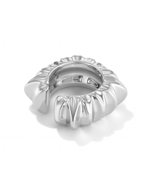 Широкий текстурный кафф необычного силуэта, придуманный во время изучения фотографий солнечной «короны» — самого горячего слоя атмосферы Солнца. Удобный, заметный, ловит и отражает блики света своими многочисленными поверхностями.