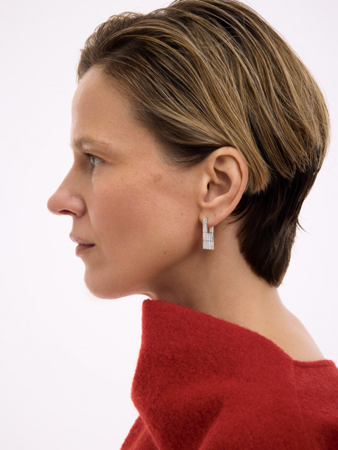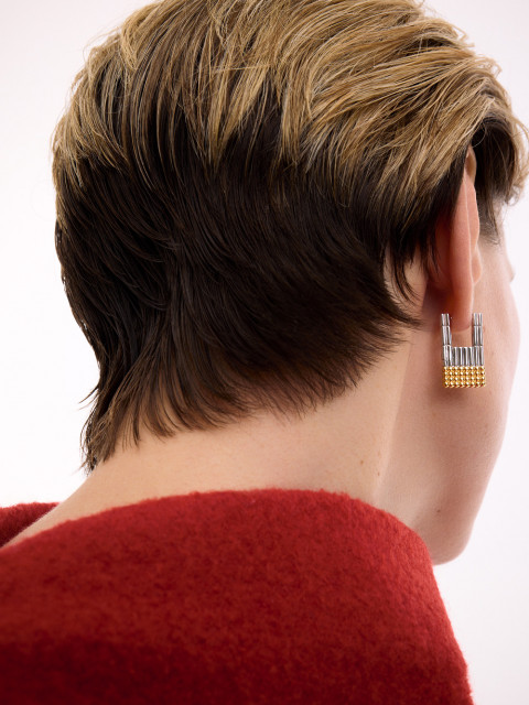 Стеклярус — и символ хрупкости, и строительный материал, из которого мы выстраиваем украшения, как небольшие бруталистские здания. Эти серьги в движении дают красивые «электрические» блики.