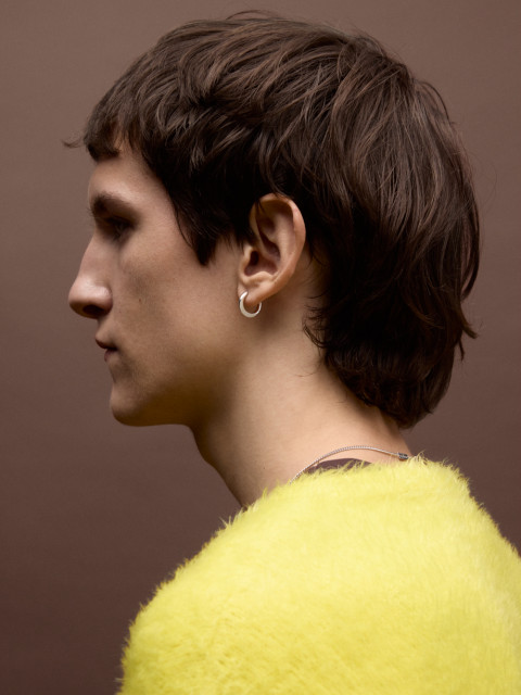 Повседневная серьга-хуп в виде трубки с сатиновым срезом.