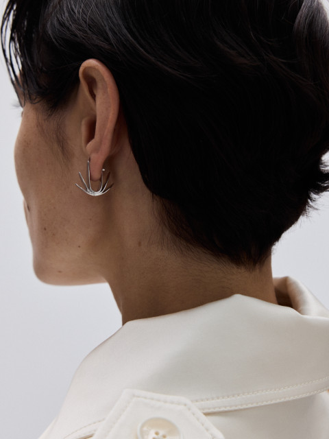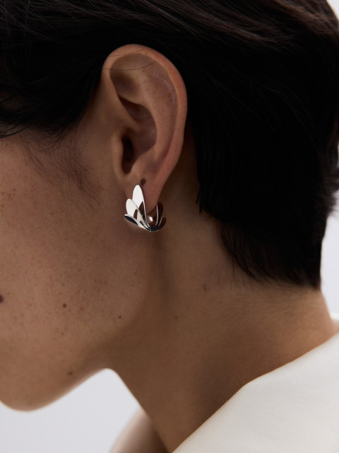 Заметная серьга в виде трех будто притягивающихся эллипсов. Немного похожа на космический цветок с лепестками, и нам нравится эта аналогия.