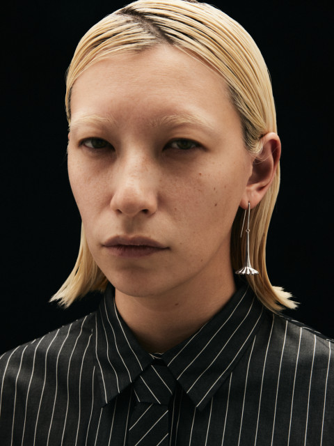 Серьга из серии «Фазы» повторяет движение платья из постановки 1982 года Анны Терезы Де Кеерсмакер «Фазы. Четыре движения на музыку Стива Райха».