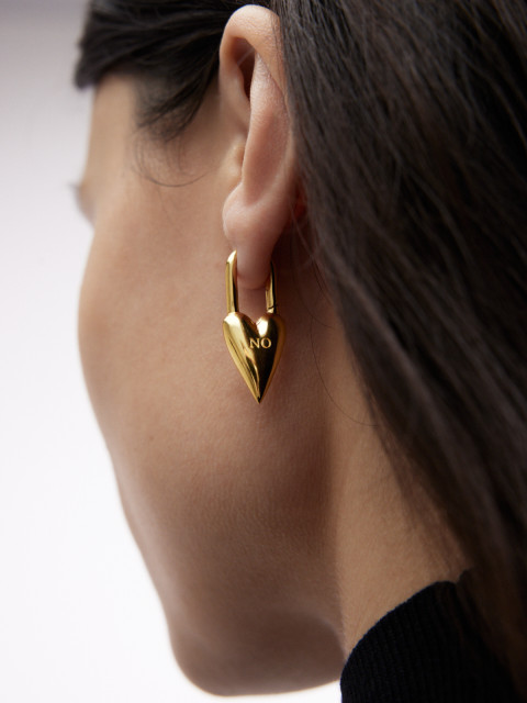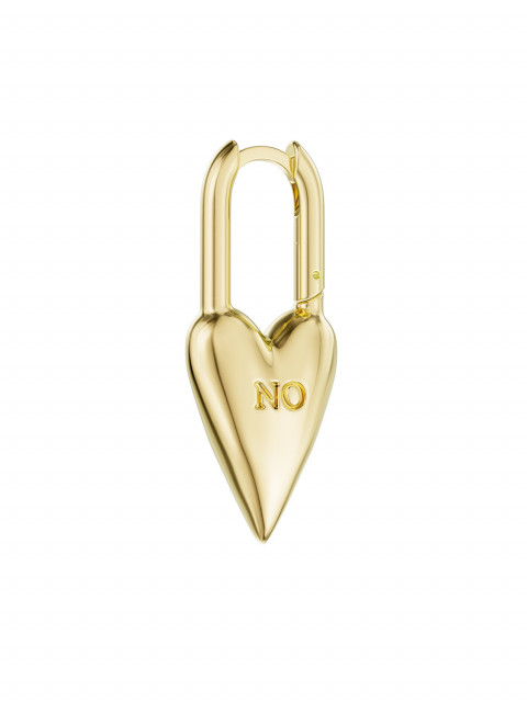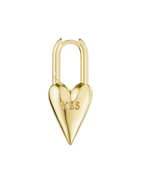 Серьга в форме навесного замка — такие вешают на перилах на память. На одной стороне YES, а на другой NO. Потому что каждый из нас больше, чем «только да» и «только нет». Можно носить соло или собрать пару.