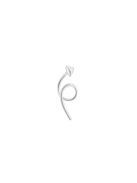 Серьга-завиток сердце из белого золота правая