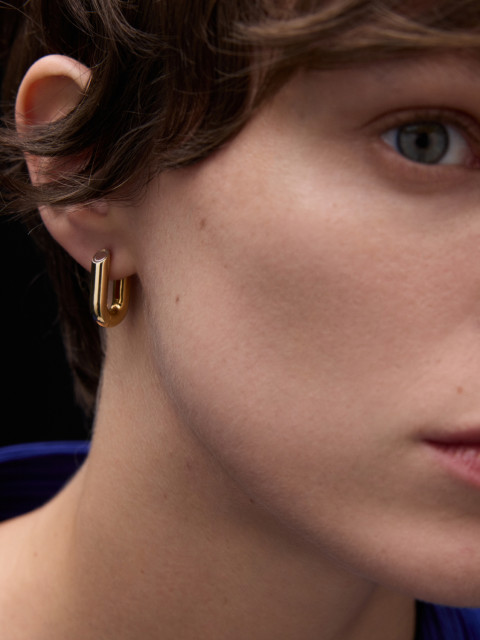 Это украшение из семейства U-серег особой формы, похожее на согнутую ветку, срезанную секатором. Позолота нанесена вручную.
