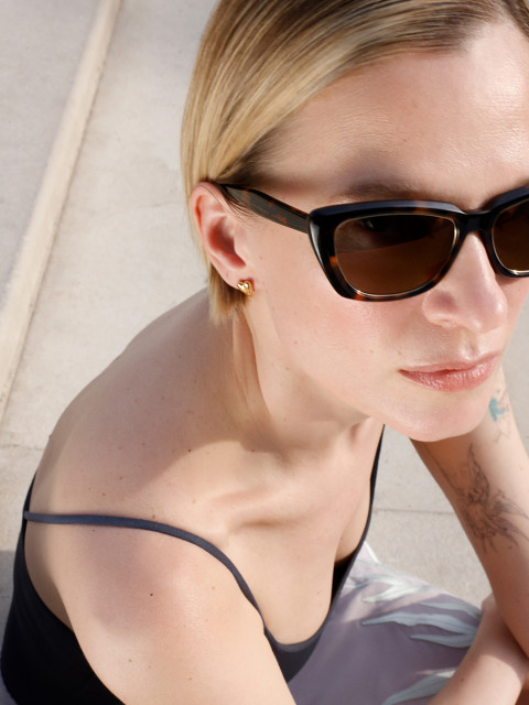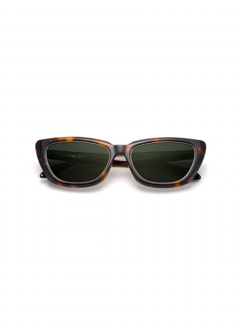 Новая совместная работа с петербургским брендом очков P.Y.E. Слегка вытянутая форма лепестка с заостренными концами — свежий взгляд на форму cat-eye без приставки «ретро». Черепаховый ацетат с бутылочно-зелеными линзами и бронзовым антибликовым напылением. Линзы с максимальной защитой от УФ.