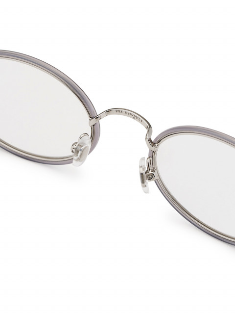 Что еще: регулируемые носоупоры, выемка-холдер, чтобы цепочка не съезжала, и едва заметные гравировки на мостике и на концах заушников. В комплекте жесткий кейс. В оправу установлены демонстрационные линзы. Вы можете заказать линзы для зрения или имиджевые линзы для этой оправы в любом салоне P.Y.E.