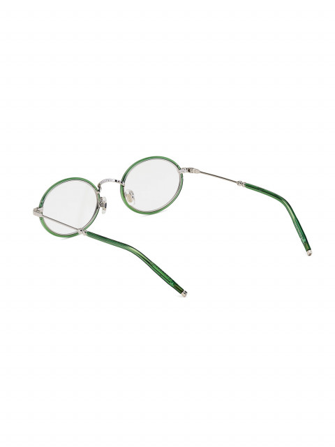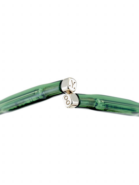 Коллаборация с петербургским брендом очков P.Y.E — очки овальной формы, вдохновленные британскими 90-ми. Изумрудно-зеленый ацетат — буквально цвет «баксов», отсюда и название. Что еще: регулируемые носоупоры, выемка-холдер, чтобы цепочка не съезжала, и едва заметные гравировки на мостике и на концах заушников. В комплекте жесткий кейс. В оправу установлены демонстрационные линзы. Вы можете заказать линзы для зрения или имиджевые линзы для этой оправы в любом салоне P.Y.E.