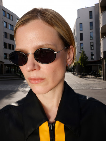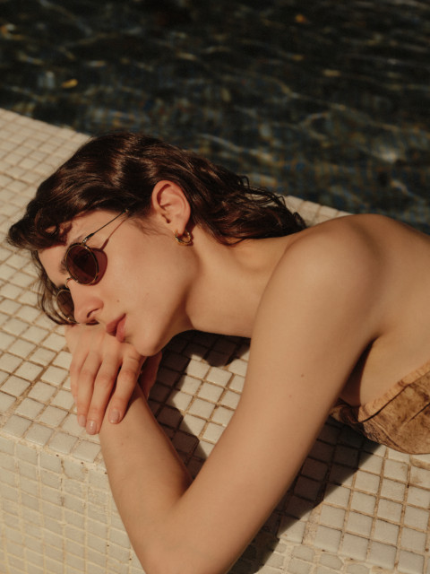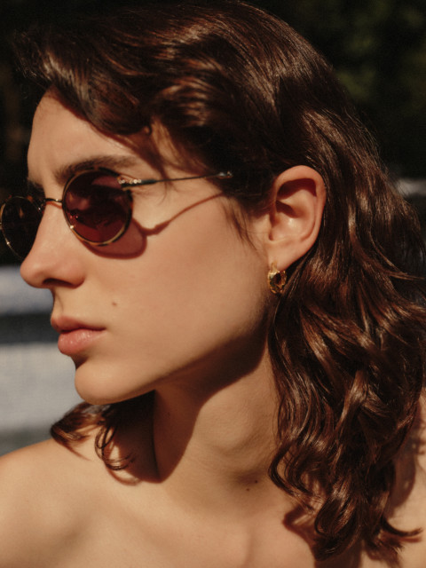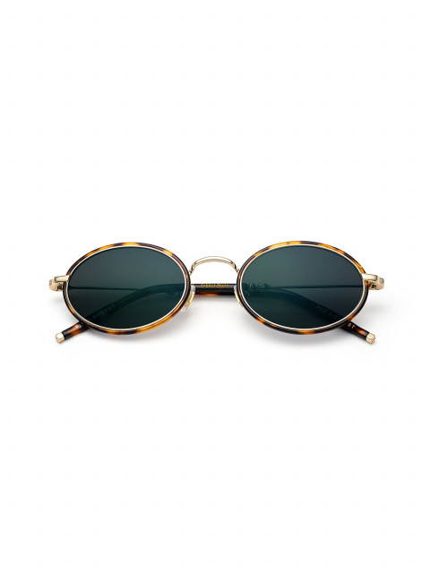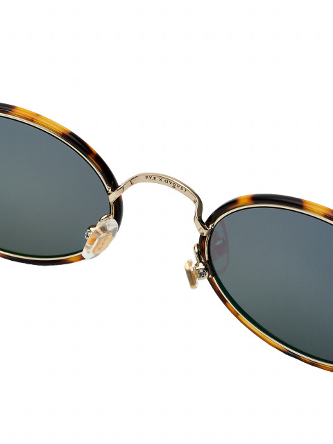 Новая совместная работа с петербургским брендом очков P.Y.E — очки овальной формы, вдохновленные британскими 90-ми. Черепаховый ацетат с бутылочно-зелеными линзами. Цвет металла — неяркое золото. Что еще: регулируемые носоупоры, выемка-холдер, чтобы цепочка не съезжала, и едва заметные гравировки на мостике и на концах заушников. Линзы дополнены антибликовым напылением с обеих сторон и максимальной защитой от УФ. В комплекте жесткий кейс.