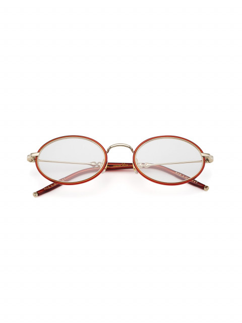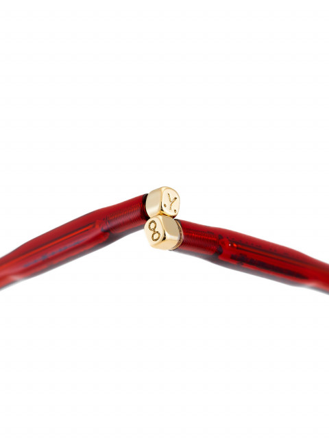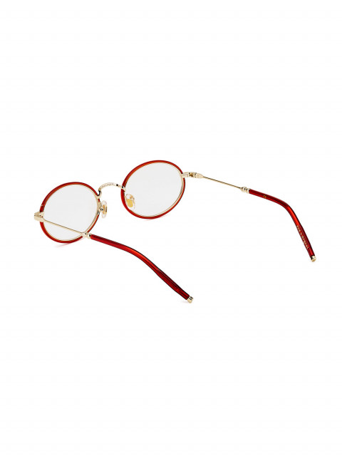 Коллаборация с петербургским брендом очков P.Y.E — очки овальной формы, вдохновленные британскими 90-ми. Винно-красный ацетат, цвет металла — неяркое золото. Что еще: регулируемые носоупоры, выемка-холдер, чтобы цепочка не съезжала, и едва заметные гравировки на мостике и на концах заушников. В комплекте жесткий кейс. В оправу установлены демонстрационные линзы. Вы можете заказать линзы для зрения или имиджевые линзы для этой оправы в любом салоне P.Y.E.