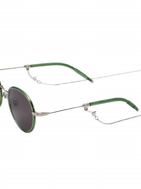 Коллаборация с петербургским брендом очков P.Y.E, вдохновленная британскими 80-ми. Изумрудно-зеленый ацетат с зелеными линзами — буквально цвет «баксов», отсюда и название. Регулируемые носоупоры, выемка-холдер для фиксации цепочки, едва заметные гравировки на мостике и на концах заушников. Линзы дополнены антибликовым напылением с обеих сторон и максимальной защитой от УФ. В комплекте жесткий кейс.