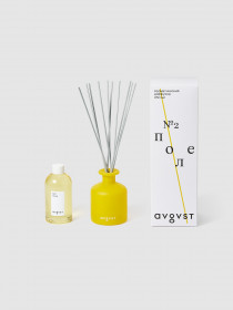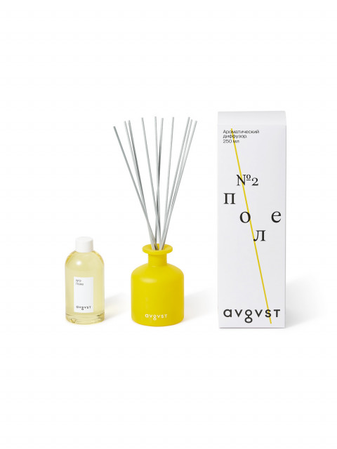 Аромат для дома №2 Поле — дымный и древесный. Пряный сухой воздух поля в августе. Выжженная солнцем трава, полевые цветы, согревающие оттенки табака и дерева. Диффузор с ротанговыми палочками и незаметным логотипом, чтобы в комнате пахло августом. Этот аромат разработан для Avgvst в Fakoshima Perfumes. Флакона хватит на 3-4 месяца.
