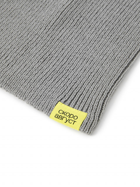 Чтобы сохранить лицо. Теплая серая балаклава с напоминанием «скоро август» на этикетке. Задумано в Августе. Сделано для нас екатеринбургским брендом Check Ya Head.