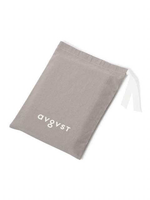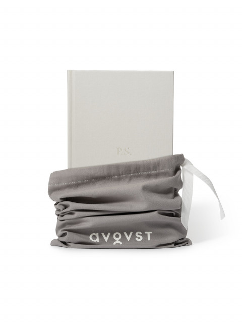 Блокнот упакован в хлопковый пыльник на завязках с логотипом Август.