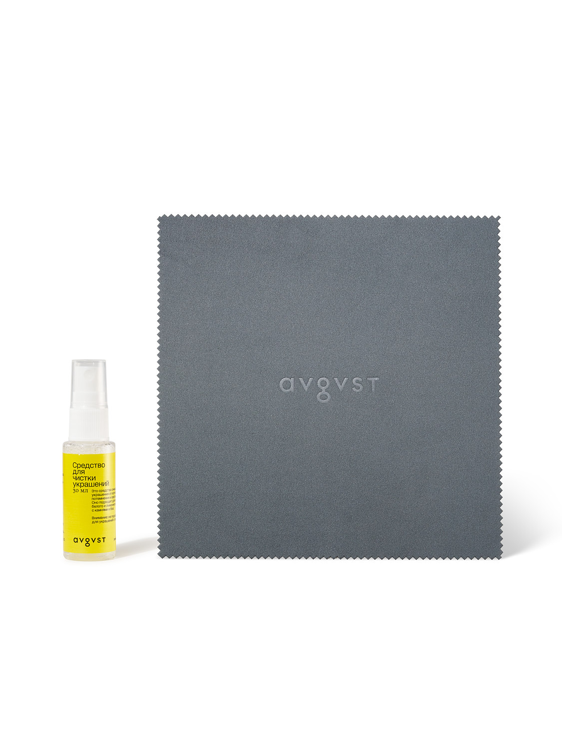В набор входит флакон состава для ухода (30 мл) и специальная салфетка для украшений, бережно очищающая поверхность металла.