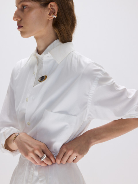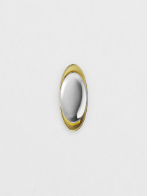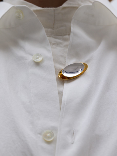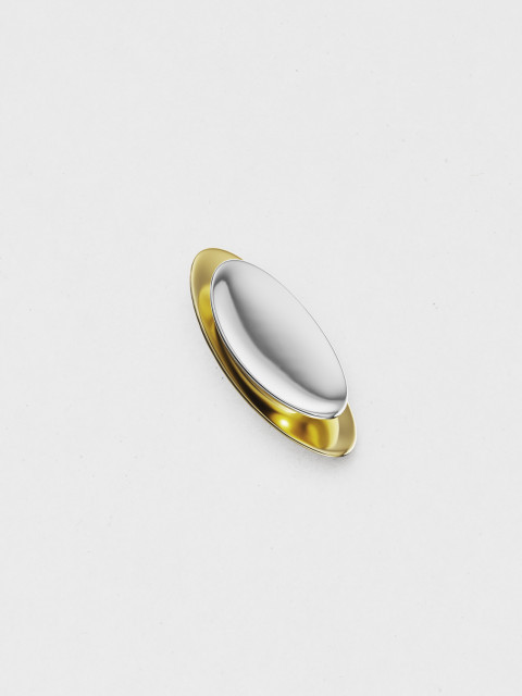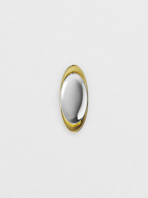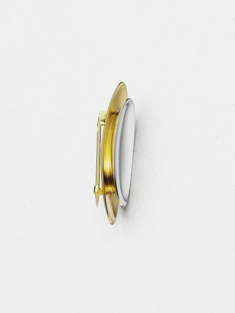 Брошь с комбинированным покрытием золотом и родием — размышление о притяжении. Вогнутая поверхность собирает и отражает лучи, создавая красивый блик.