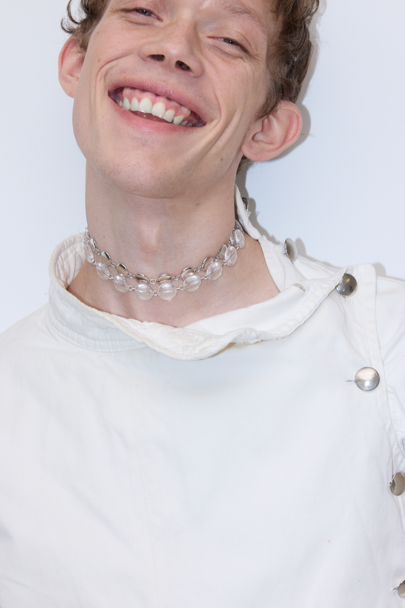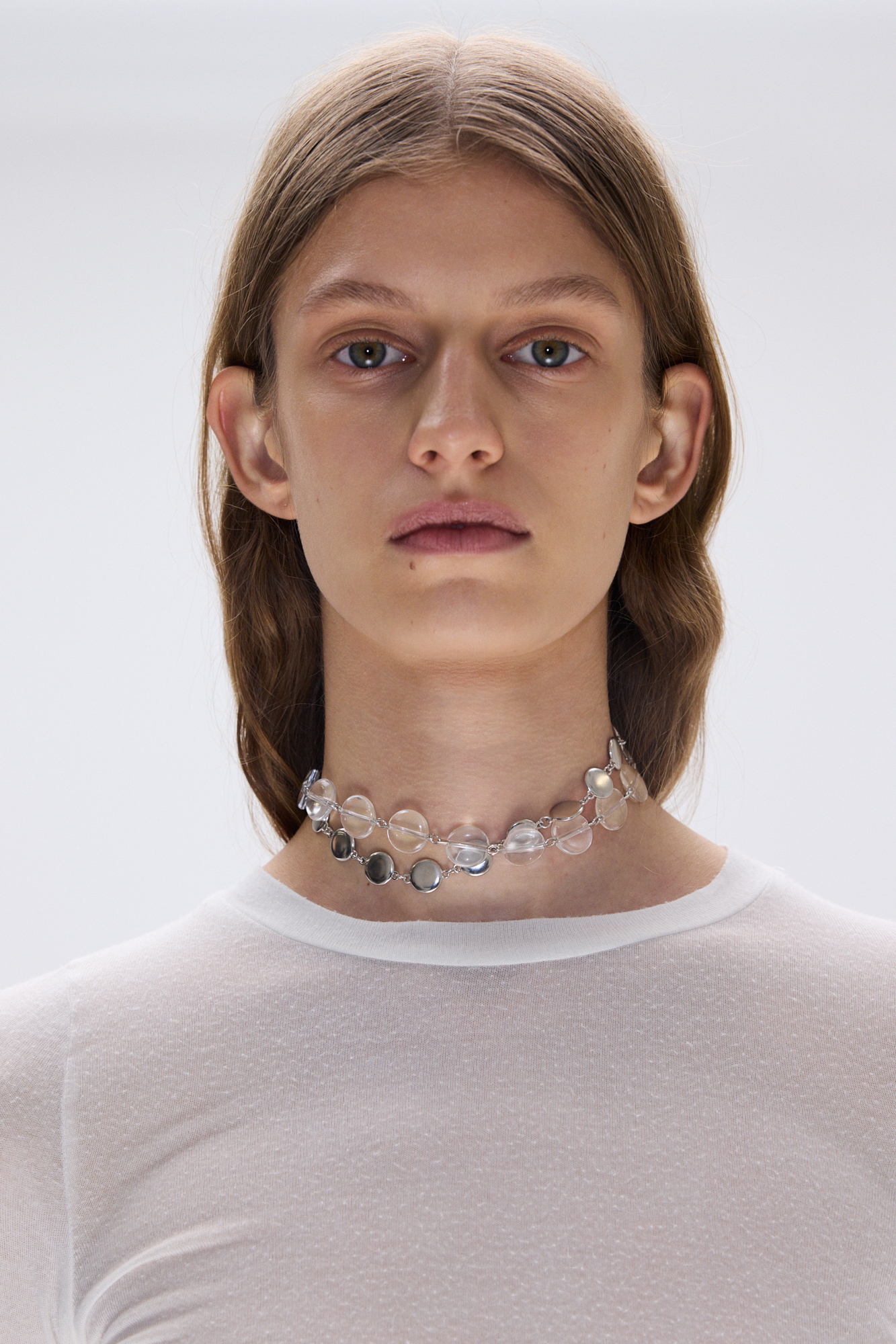 Двойной чокер представляет собой сет из двух предметов из серебра и горного хрусталя. Это самое знаковое украшение коллекции: одна часть всегда будет перекрывать другую, символизируя затмение и различные фазы Луны.