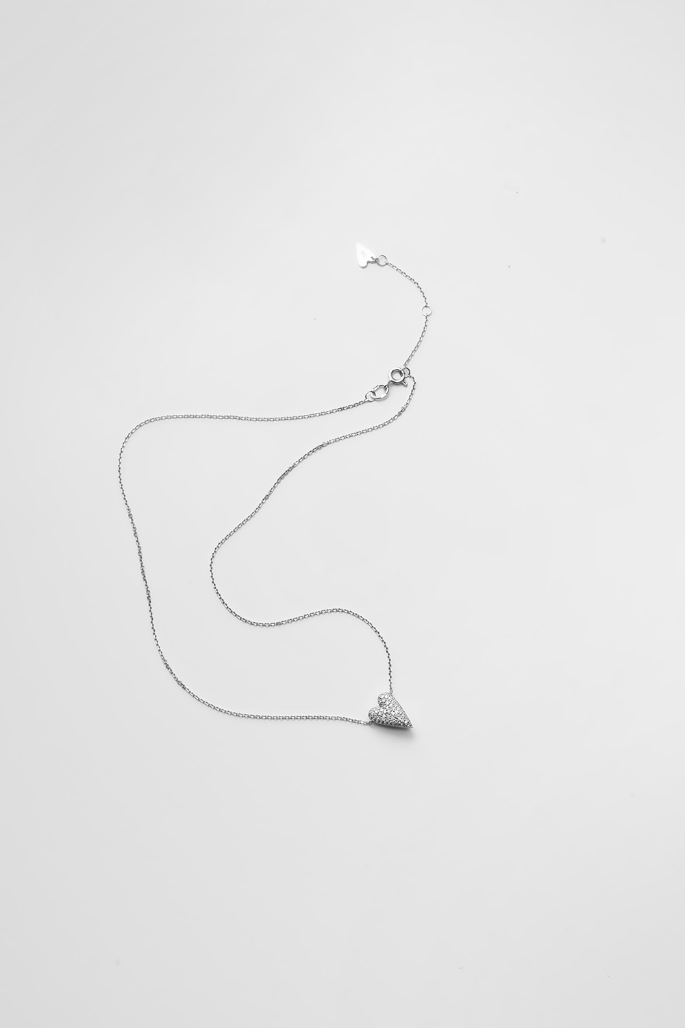 Подвеска-сердце с бриллиантовым паве на короткой цепочке. Особая вытянутая форма сердца вдохновлена музейными украшениями 16 века.