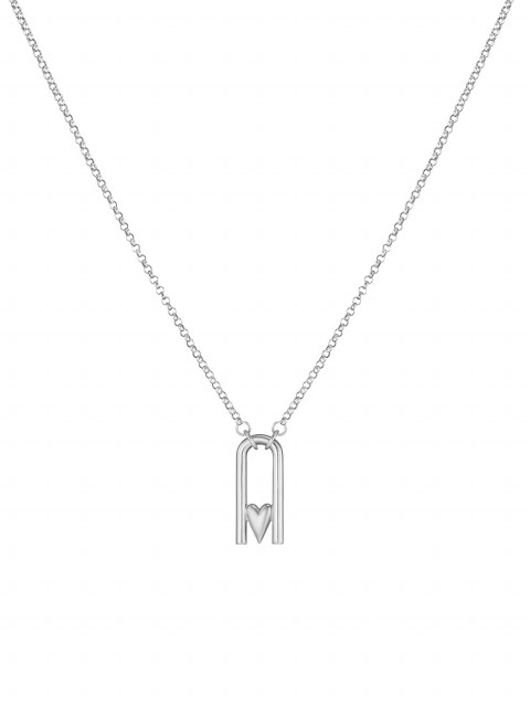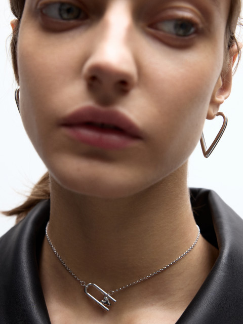 Сердце внутри звена будто бережно взято в скобки. Звено подвешено на подвижные колечки: чтобы носить горизонтально, застегните цепочку повыше.
