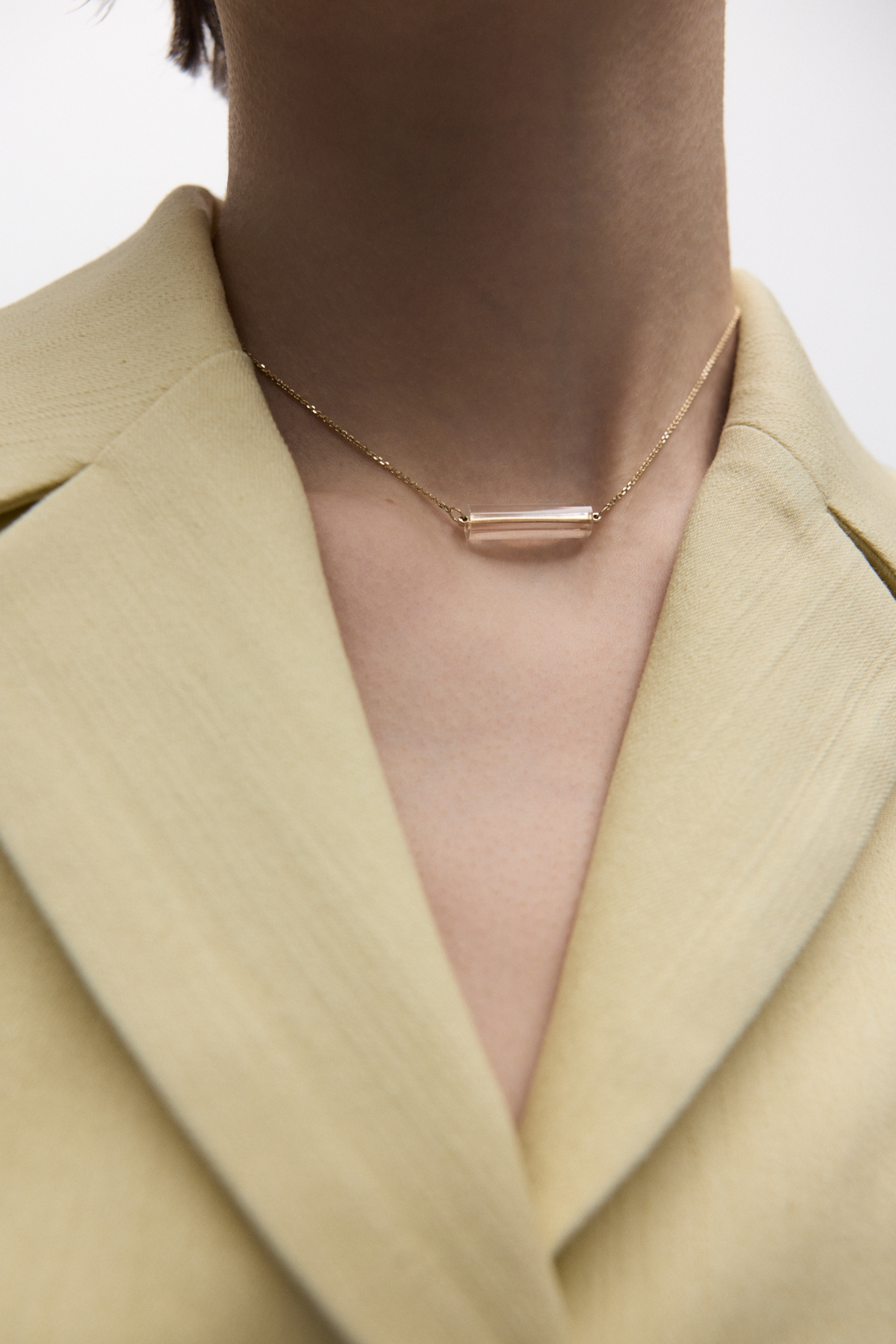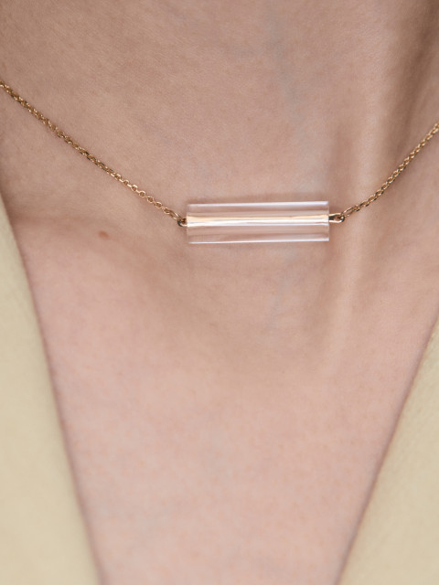Подвеска стеклярус с горным хрусталем из лимонного золота