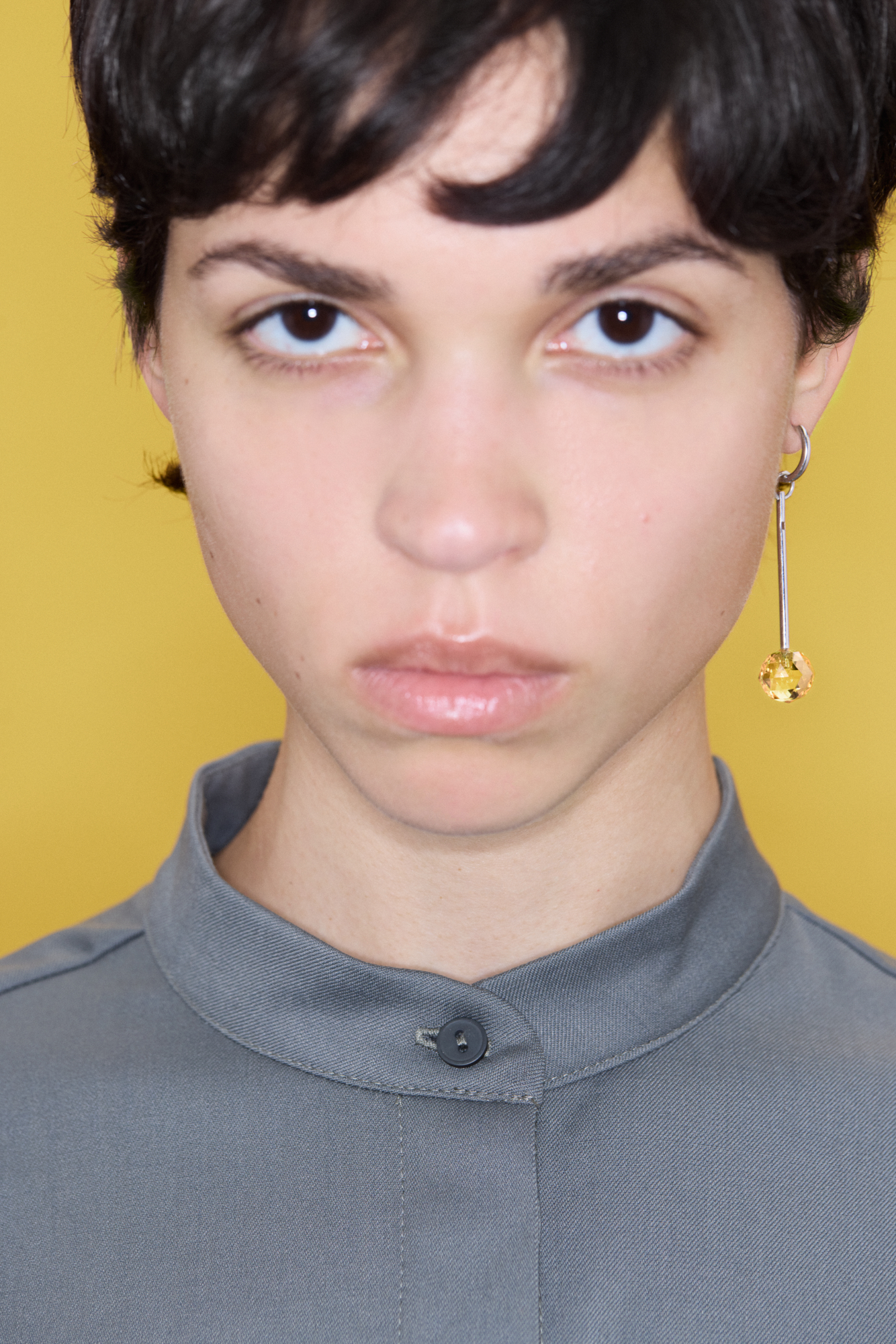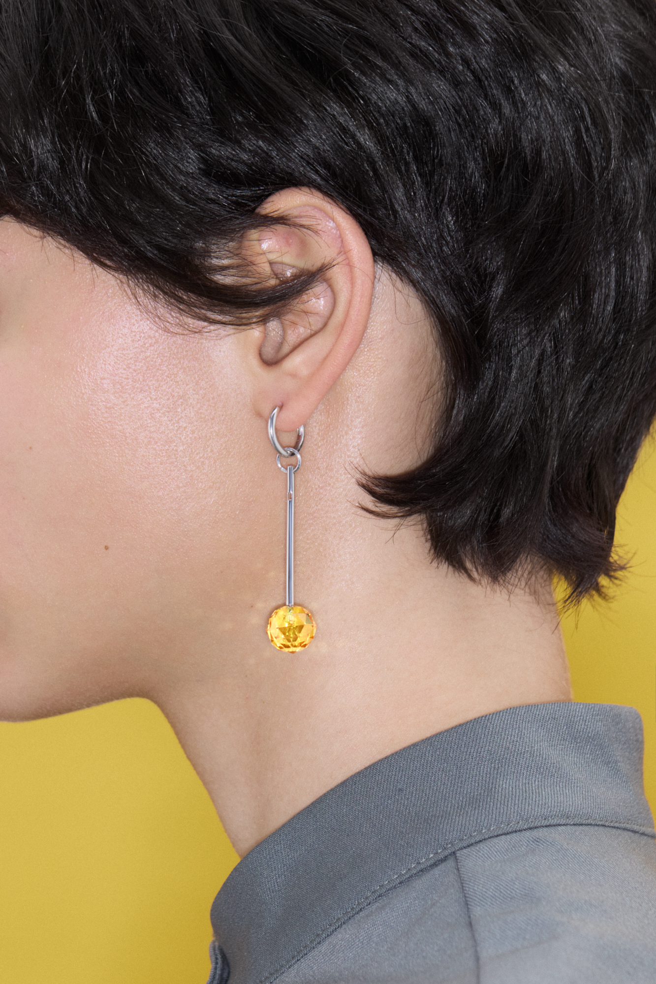Дополните серьгой-хупом или цепочкой.