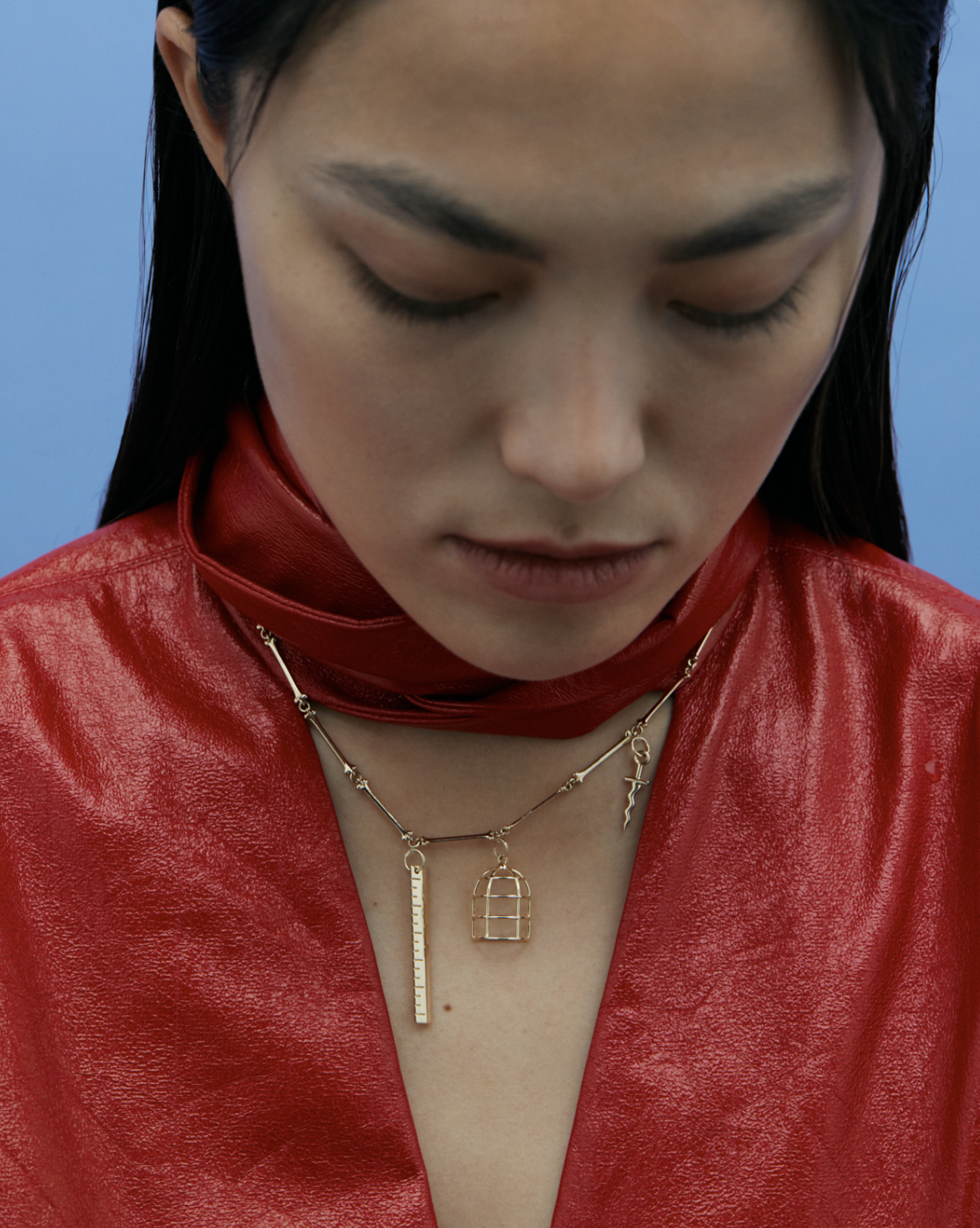 Можно дополнить тринкетом золотое колье или браслет Кости — и просто носить на серьге-хупе или на цепочке.