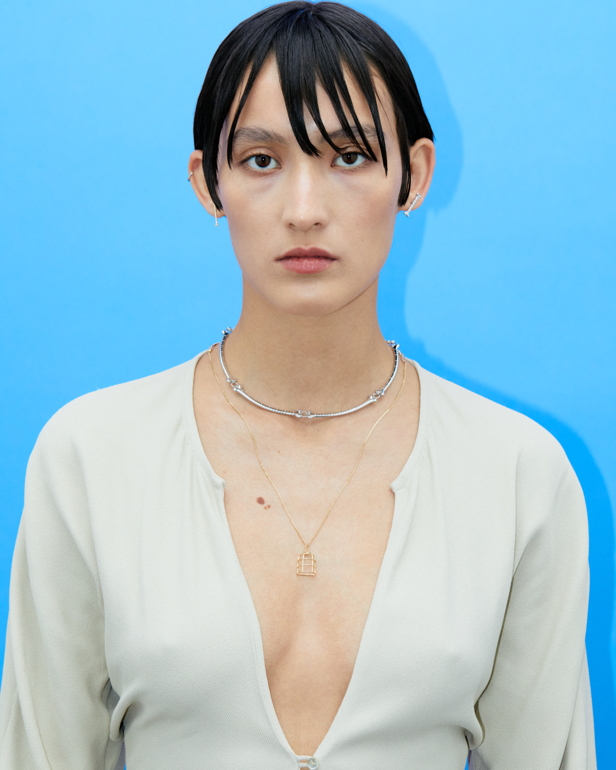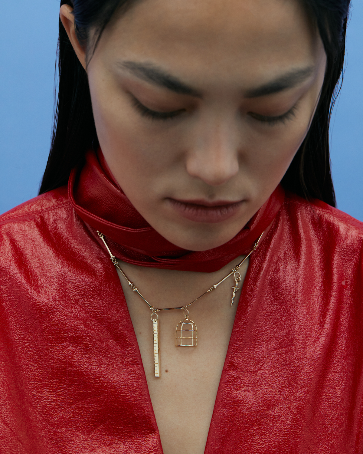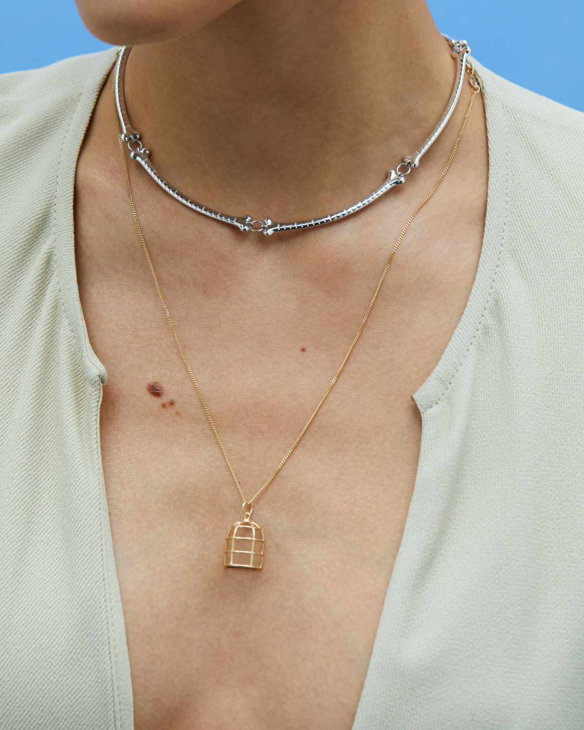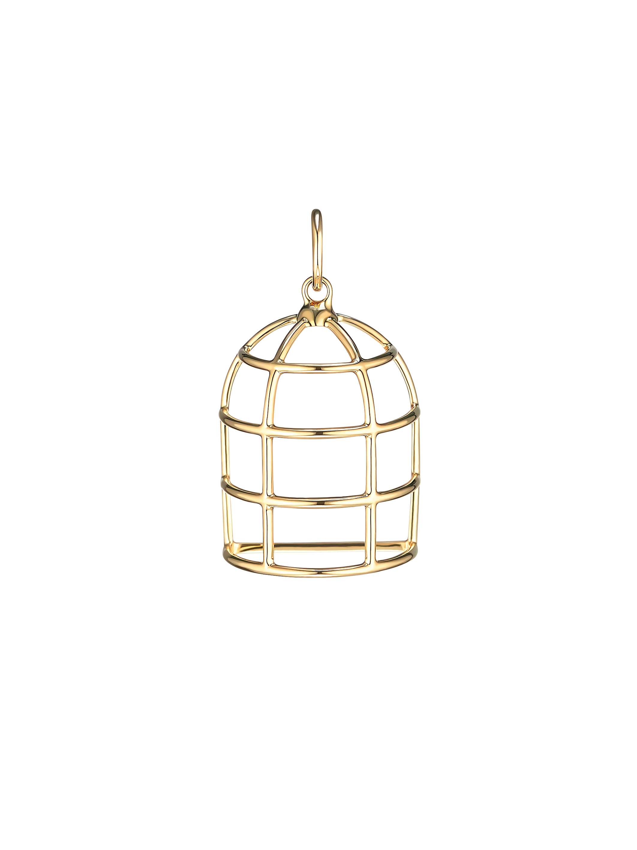 Половинка золотой клетки, которой можно дополнить золотое колье или браслет Кости — либо просто носить на серьге-хупе или на цепочке.