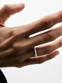 В процессе работы мы опирались на схемы плетения корабельных канатов и шнуров. Получилось монолитное плетение, на котором будут меньше заметны царапинки и следы жизни на металле.