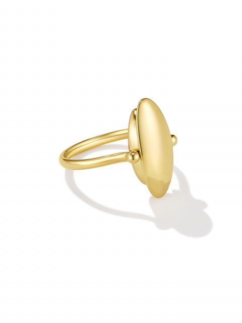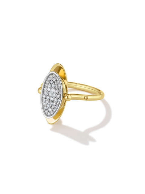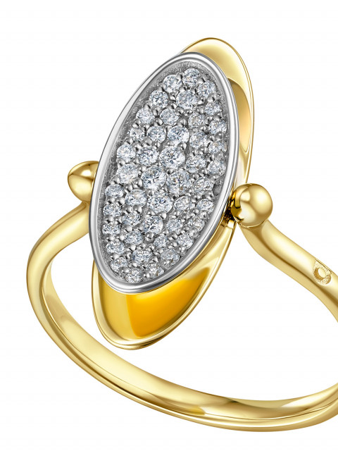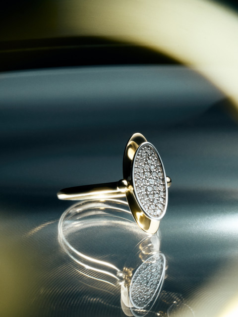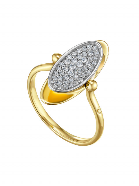Кольцо-перевертыш из двух эллипсов, будто притягивающихся друг к другу. Вогнутая поверхность покрыта россыпью бриллиантов, а обратная сторона гладко отполирована: стороны по-разному отражают свет.