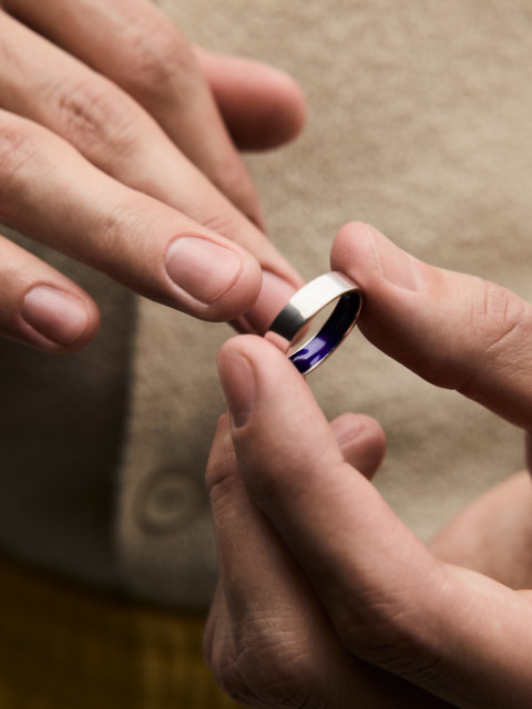 Обручальное кольцо с эмалью внутри глянцевое