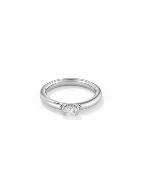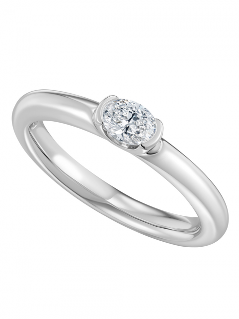 Кольцо для помолвки с природным бриллиантом в форме овала. Это заметный камень, который мы закрепили особым способом, так чтобы максимально открыть бриллиант, усилив игру света в нем.