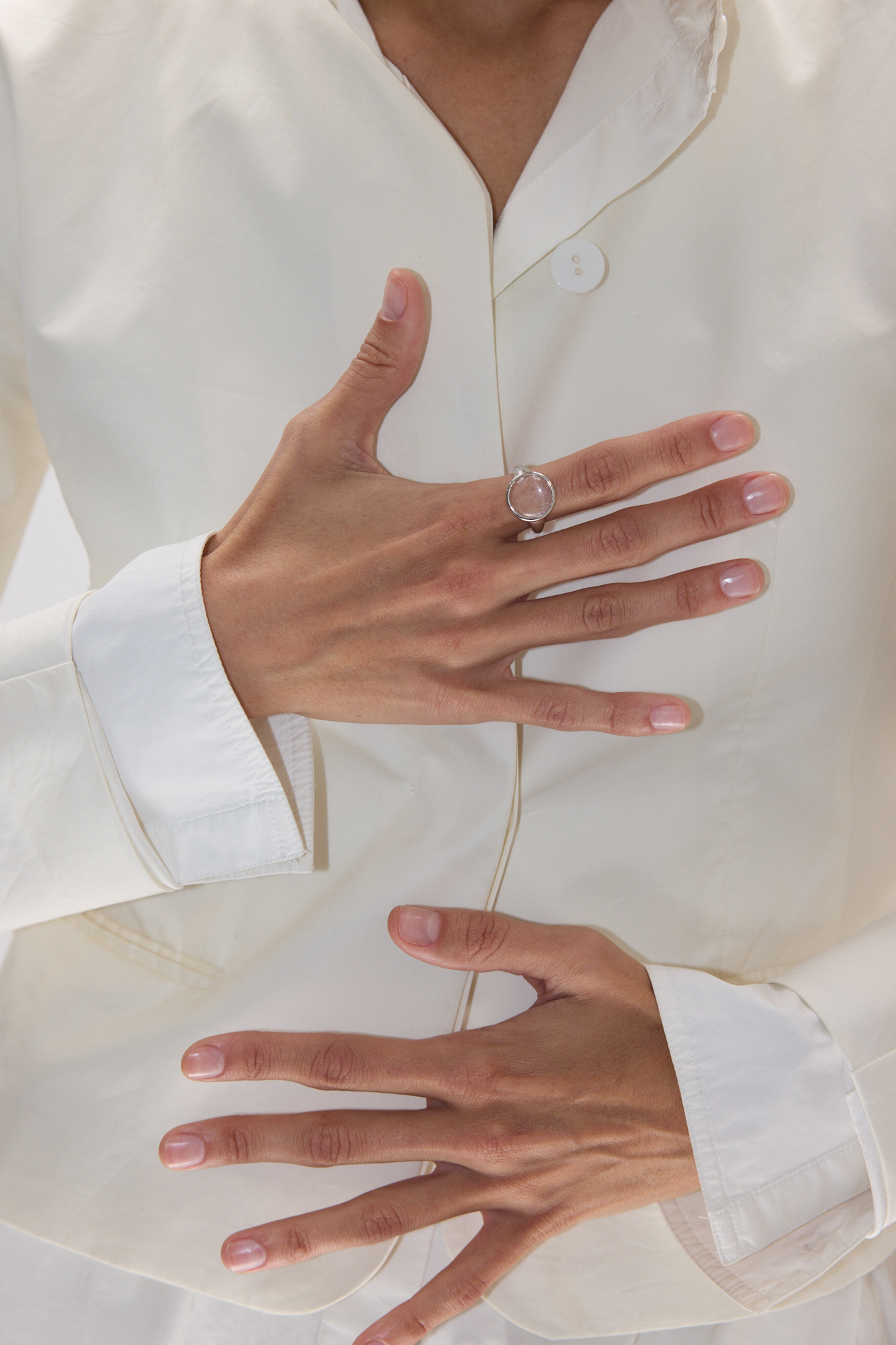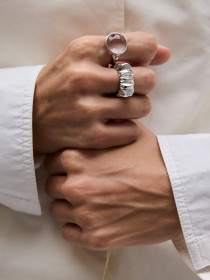 Кольцо с хрустальным диском. Горный хрусталь для всех украшений отбирается и гранится вручную по нашим чертежам. Сочетайте с текстурными или контрастными по форме кольцами.