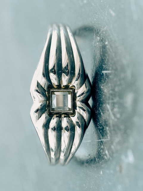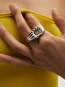 Кольцо с горным хрусталем, обхватывающее два пальца. Торжественное кольцо для любого эстетического приключения. Хрустальная сцена на фоне бархатных кулис.