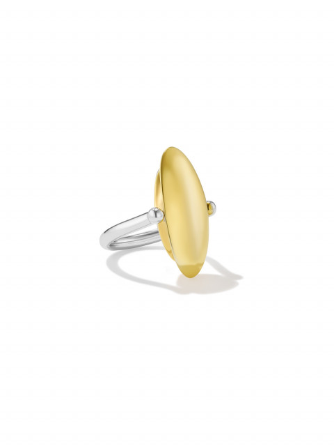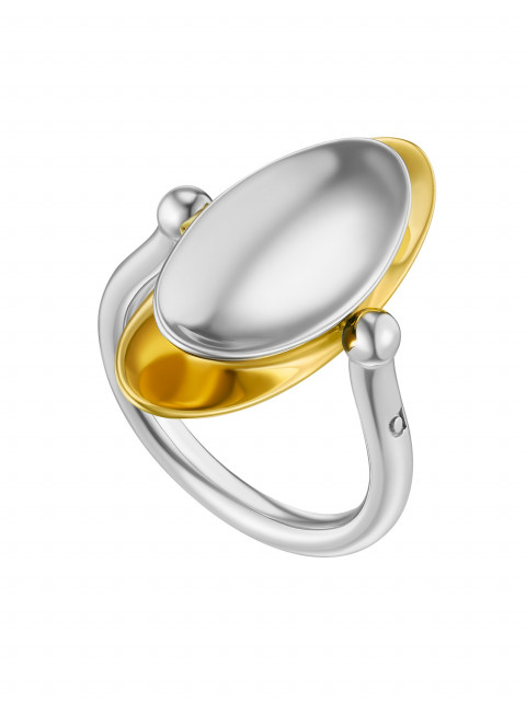 В коллекции Eclipse мы исследовали притяжение абстрактных форм — так появилось кольцо-перевертыш из двух эллипсов с комбинированным покрытием золотом и родием. Двойная вогнутая поверхность и минималистичная выпуклая сторона обладают разным характером, по-разному отражая луч света.