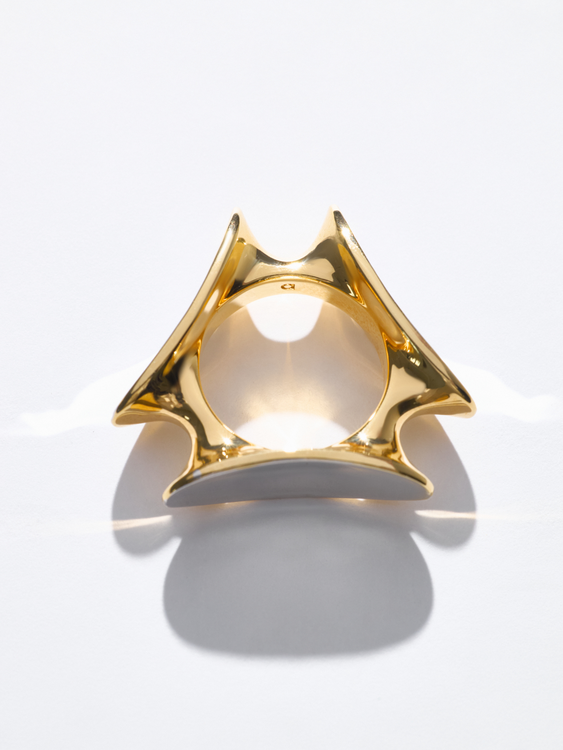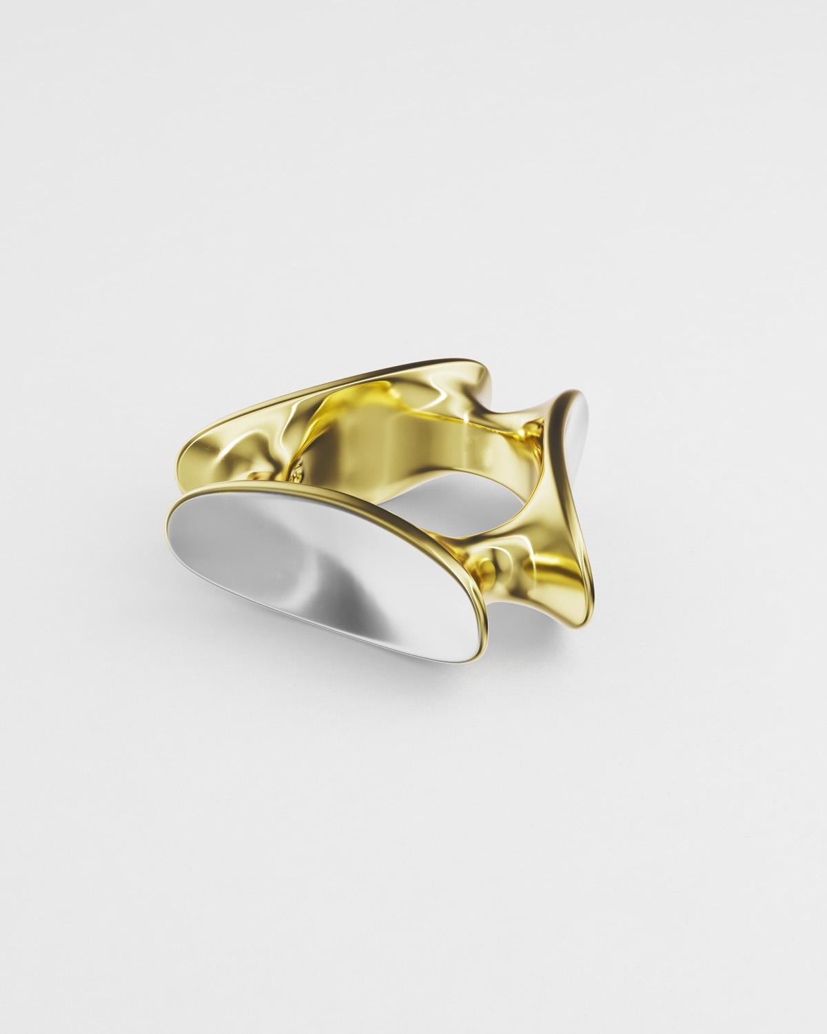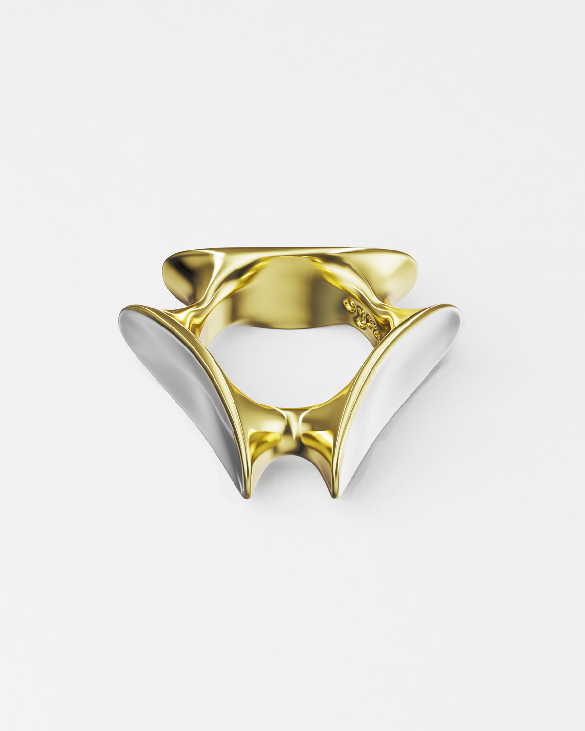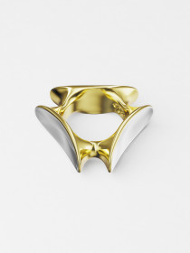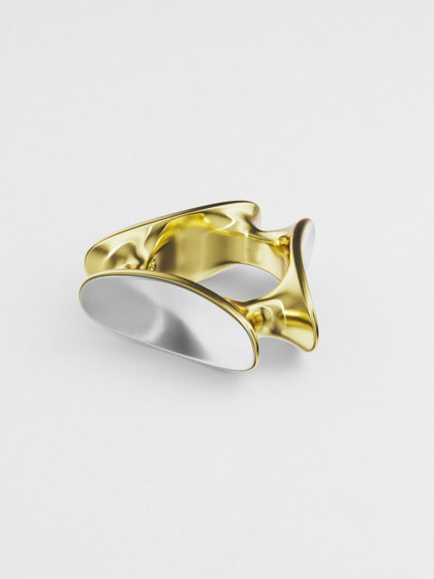 Фотогеничное кольцо нетривиальной формы, составленное из эллипсов, которые будто притягиваются к телу. Это кольцо разработано так, чтобы было удобно носить его на мизинце. Эллипсы расположены под разными углами, поэтому все стороны у кольца «рабочие».